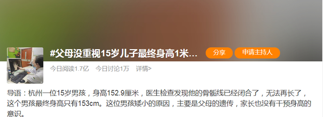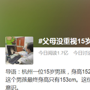 “父母没重视15岁儿子最终身高1米53”上热搜,该咋重视?