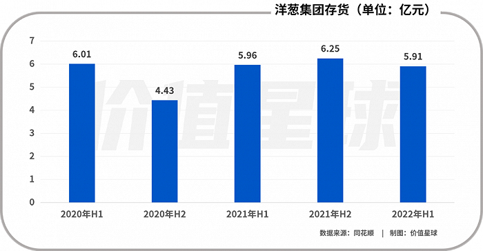 财报显示,截至2022年Q1洋葱集团有价值5.91亿元的存货,到了H1结束仍然是5.91亿,三个月的时间存货并未减少。为了消化掉这些库存,2022年H1洋葱在销售环节投入了大量资金,当期销售及管理费用达到2.83亿元,比Q1的1.42亿元同比翻了近一倍,但从结果来看收效甚微。