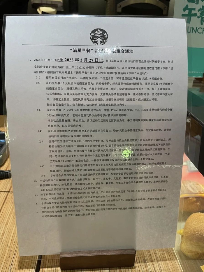 星巴克满星早餐套餐下架。