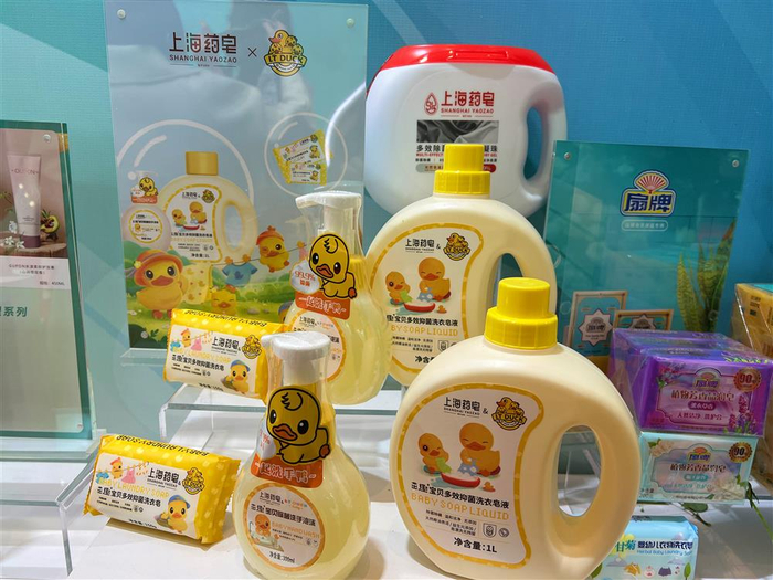 另一方面,产品设计和包装,都多了国潮元素。“不同品牌各有侧重,比如‘蜂花’在香味上做文章,‘上海药皂’更强调功效。核心都是传播中国传统文化,包括中国传统花卉、中草药等。”工作人员举例,以往的香皂香调单一,但现在引入了香氛的概念,一块肥皂、一瓶液体香皂都有前调、中调、后调。比如升级版的“蜂花红原暖檀”前调是草本香,中调是依兰,后调是檀香木和零陵香豆,使得原先的木质香中多了清淡的花香。