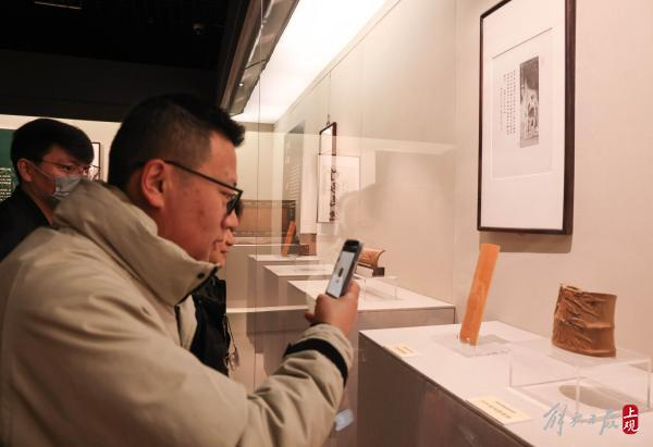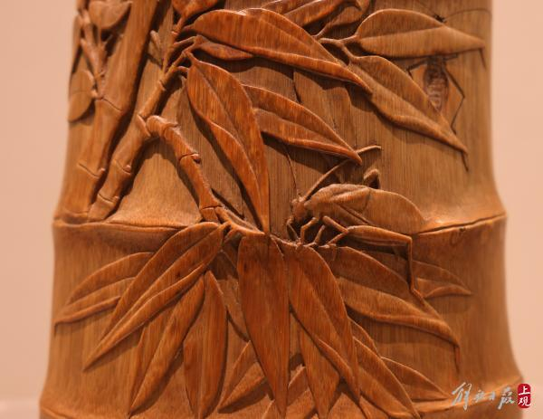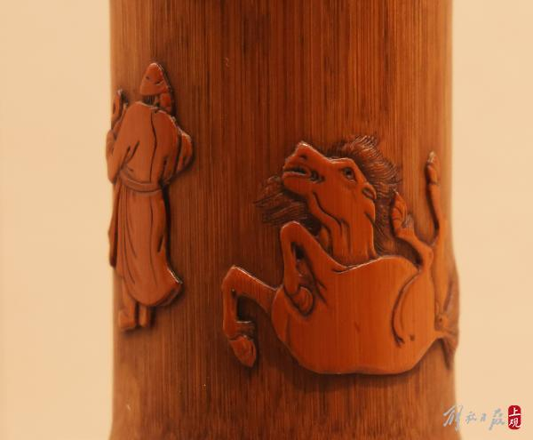 当日,“竹缘嘉趣——王威艺术作品展”在嘉定博物馆举行。竹刻,是嘉定的一张重要名片。竹刻作品呈现出竹之高雅风韵,此次展出160多件各种艺术作品。嘉定竹刻承袭了竹文化之菁华,以竹为载体,展现出传统文化的雅趣。