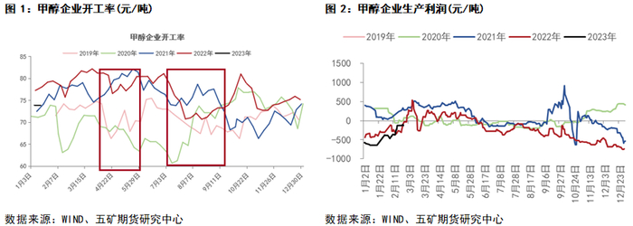 1、在每年6月初-9月初甲醇主要以累库为主,这段时间甲醇春季检修基本结束,上游开工基本恢复,供应增加。叠加梅雨季节(6-8月)影响甲醇传统下游的开工,因此供增需减导致甲醇库存的高累,内地传统下游5-8月是传统降负期,且内地春检5月结束后供应亦重新回升。