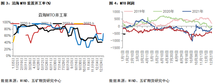 2、MTO利润决定甲醇价格上限:MTO利润的走低会带来的装置停车增多,部分装置外采单体替代甲醇,带来甲醇需求的阶段性减少,限制甲醇上行空间。
