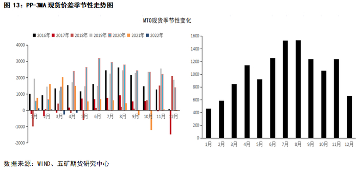 而PP在7-10月现货价格更容易走强,主要原因为金九银十旺季以及PP秋季检修带来的影响,因此甲醇与PP的季节性强弱关系导致了MTO利润出现季节性变化。但是要注意盘面与现货会有一些差异。