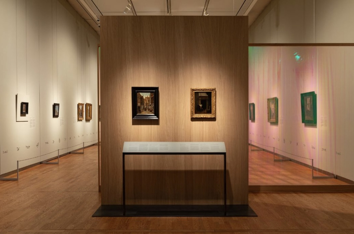 展览中有两幅作品,曾在1888年假冒维米尔之名售出。其中一幅是汉堡美术馆藏《城墙边有一家面包店的街景》,另一幅是私人收藏的《阅读的老妇人和窗后的男孩》。