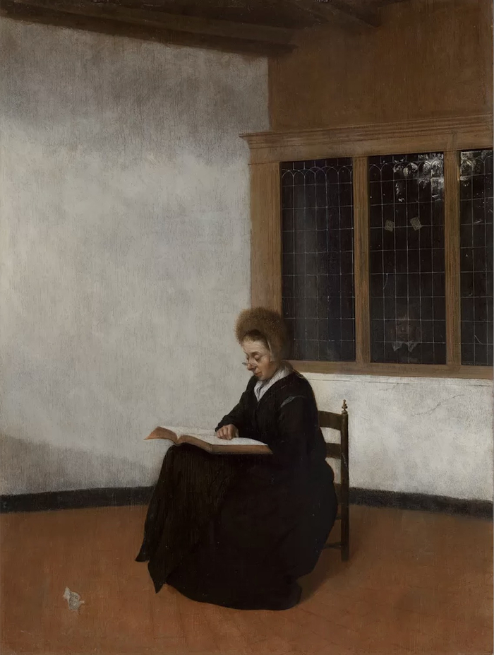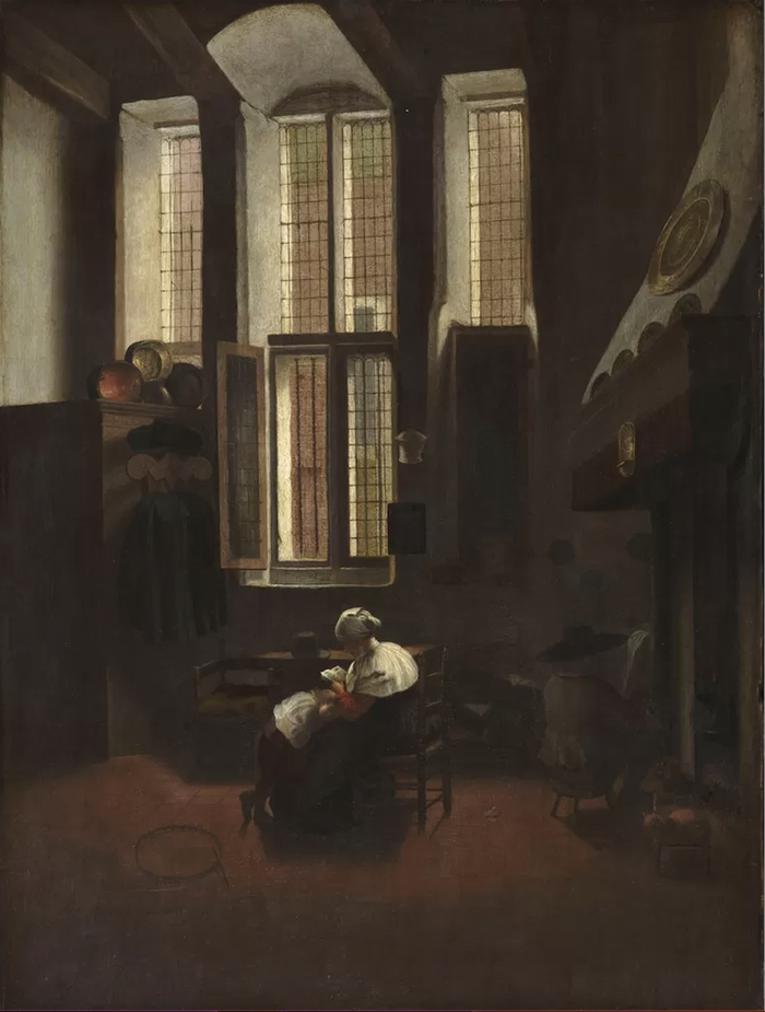 幸运的是,弗雷尔很快将注意力转移到了室内,但依旧是灰色、昏暗的。与其他17世纪荷兰风俗画家不同,弗雷尔的作品包含着高度个人化的印象和观察,既真实又神秘。大多画面中出现的是女性的背影,她们的脸是隐藏的——这像是一个谜。