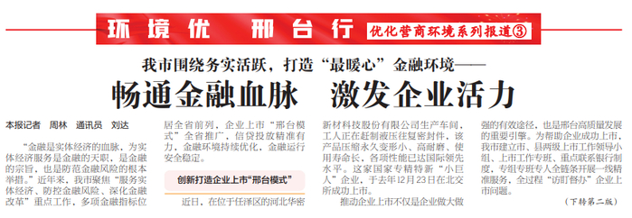 邢台市围绕务实活跃,打造“最暖心”金融环境——