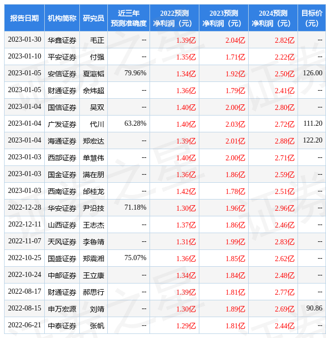 证券之星数据中心根据近三年发布的研报数据计算,安信证券夏瀛韬研究员团队对该股研究较为深入,近三年预测准确度均值为79.96%,其预测2022年度归属净利润为盈利1.34亿,根据现价换算的预测PE为66.73。