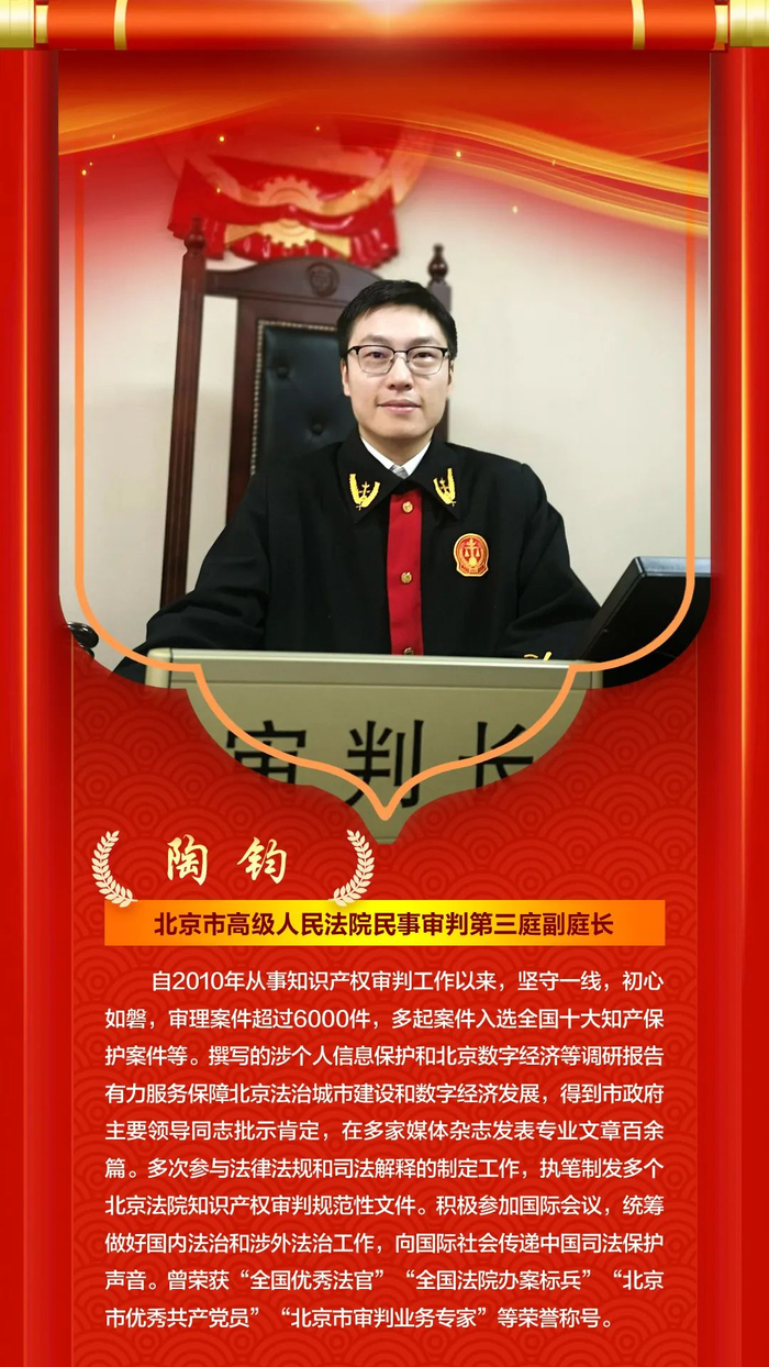 1.陶 钧 北京市高级人民法院民事审判第三庭副庭长