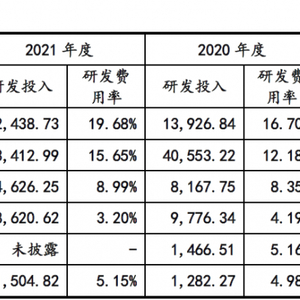 招股书显示,孚诺医药报告期内研发费用分别为1,027.27万元、1,282.27万元、1,504.82万元和725.02万元,经审阅的2022年的研发费用为1,726.57万元。经测算,2019年至2021年研发费用复合增长率为21.03%,2020年至2022年研发费用复合增长率为16.04%,不仅增长率下降,而且刚刚超过新规中研发投入的门槛要求。