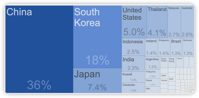 生产国是东亚国家以及德国和部分东欧国家,生产国是全球顺差的主要来源国,但细分起来,德、日、韩等是高端制造业,与其他主营中低端制造业的生产国也处不同生态位。