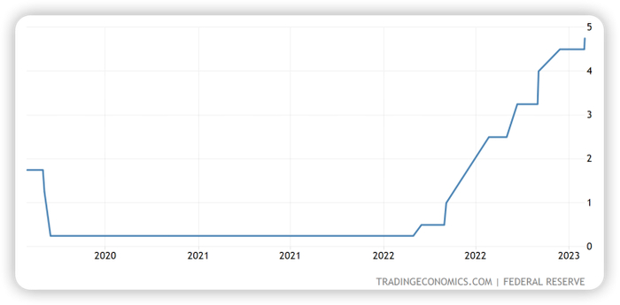 ▼ 美国利率曲线图(2020.1-2023.1)