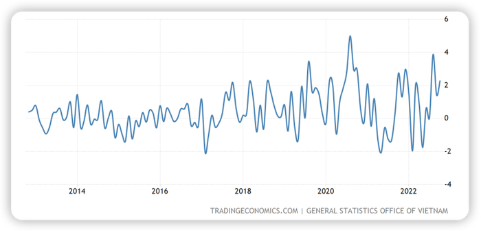 ▼ 2022年越南贸易顺差(单位:10亿美元)
