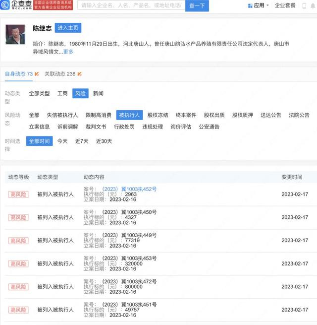 唐山打人者陈继志成被执行人 名下公司已注销