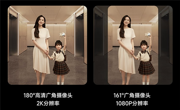 其中超广角摄像头有180°的超大广角、 2K超清分辨率,画面十分清晰,搭配全天候 AI 人形监测录像算法,实时监测门前异常及时告警,支持3天循环录制免费云存储。