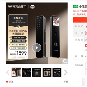 据小米智能生态官方消息,小米智能门锁M20大屏猫眼版今天已经正式开售,首发到手价1899元。