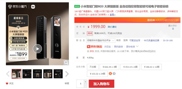 续航1整年!小米智能门锁M20大屏猫眼版开售:首发1899元