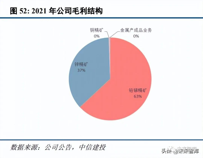 铅锑精矿为公司主要毛利来源。2016 年公司实现毛利 4.5 亿元,2021 年下降至 4.1 亿元,年均复合增长率 -2%。从毛利结构来看:(1)铅锑精矿 2016 年毛利 3.1 亿元,2021 年下降至 2.6 亿元,年均复合增长率-4%,2021 年毛利占比 63%;(2)锌精矿 2016 年毛利 1.4 亿元,2021 年增长至 1.5 亿元,年均复合增长率 2%,2021 年毛 利占比 37%。