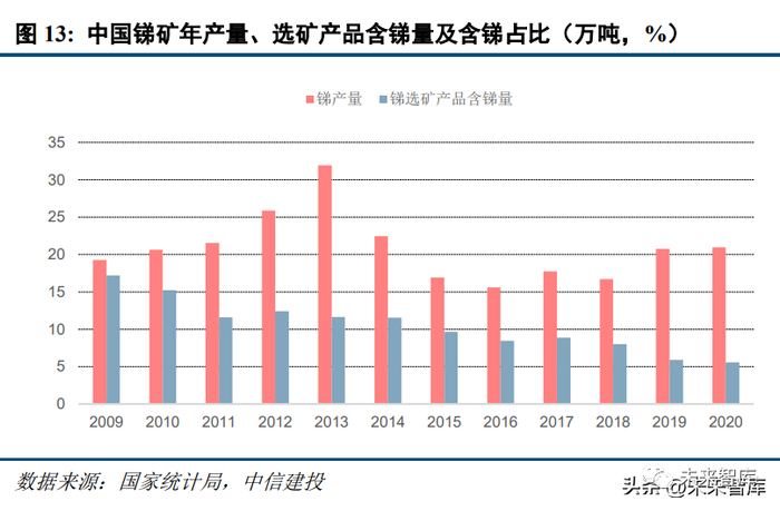 锑供给:全球静态储采比仅为18:1,中国锑产量占比55%