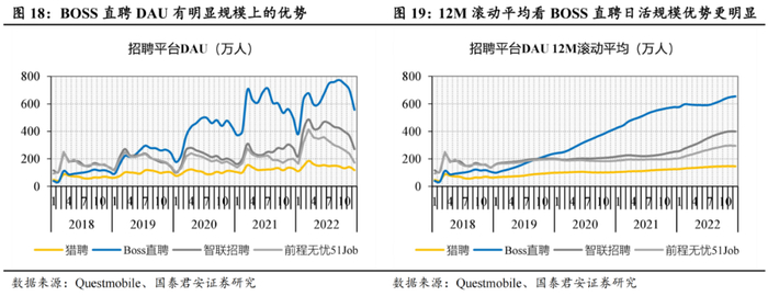 BOSS直聘作为移动互联网原生平台,网络效应有明显优势。
