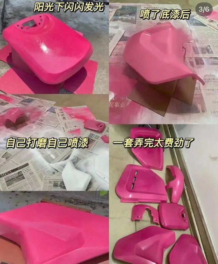 社交平台上,喜欢用pdd和1688购物、最会省钱的年轻人,还给出了电驴“穷改”攻略:15元的玲娜贝儿脚垫、5元一瓶的奶油色喷漆、35元的法式复古挡风板……