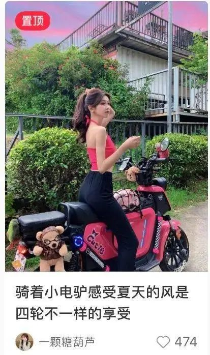 23岁的广州女孩葫芦,在小某书上有个账号,流量最好的一篇,居然是她的小电驴。