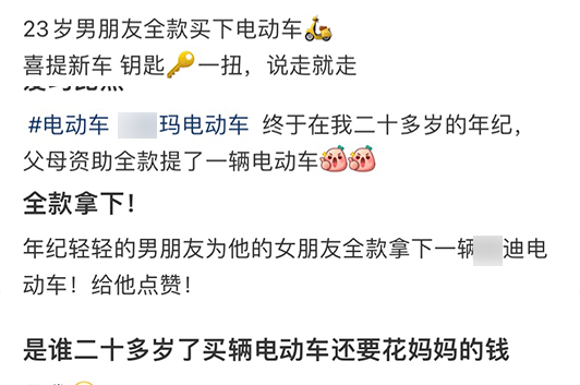 电动车成为了“县城大小姐”的座驾。她们骑着奶油色的电驴,车上挂着星黛露和玲娜贝儿,车把上架着超大杯星巴克……真实演绎了什么叫“大小姐驾到,通通闪开”。