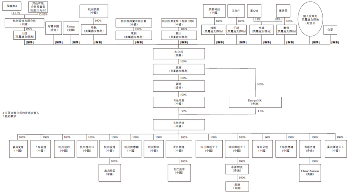上述股东经数个步骤的重组之后,持股比例通过相应的离岸公司反映,最终持股比例与上述重组前的持股数字未必完全一致。