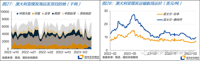 展望后续,随着今年拉尼娜向ENSO中性过度的气象条件,天气对澳煤发货的影响预计将逐渐消退,发运规模有一定上升空间。但需求端传统亚洲买家印度和日本潜在的需求下滑可能对其出口规模产生影响。我国恢复澳煤进口可能可以填补一定的需求,但贸易格局的转换也需要一定的时间,需关注我国澳煤进口恢复的节奏。