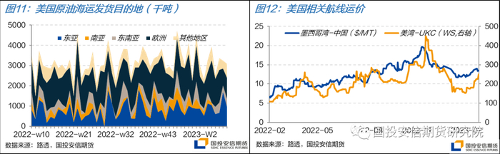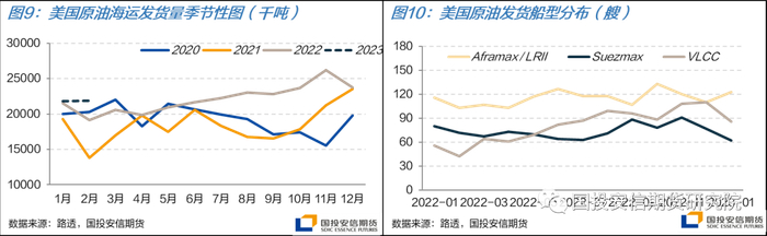 展望后续,美国原油海运发货量有望在2023年继续攀升。一方面产能有继续上升的空间,另一方面本月美国宣布计划从战略原油储备(SPR)中再释放2600万桶原油,预计4至6月交付,在此期间约将给市场带来20至30万桶/日的供应增量。