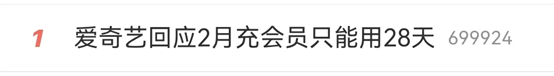 此外,就在同一天,#爱奇艺回应2月充会员只能用28天#也引起了一波讨论。
