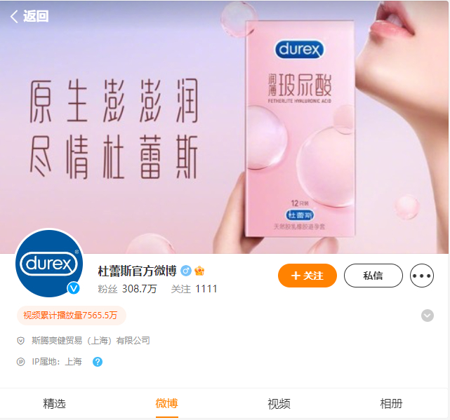杜蕾斯官方微博开通于2011年1月底,目前账号粉丝超300万。杜蕾斯官方微博功能与别的品牌不同,它肩负着更多使命。除了定时发布微博外,还兼具客服、与消费者沟通、招聘等许多任务。