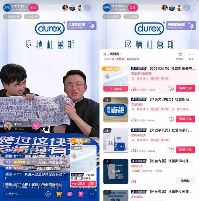杜蕾斯抖音直播首秀,场观300万带货3000元?“老司机”也带不动了?