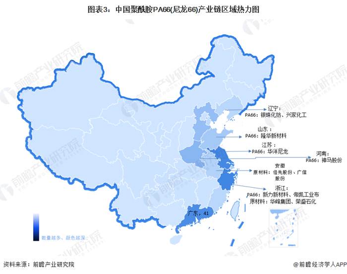 聚酰胺PA66产业链区域热力图:沿海地区分布较多
