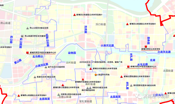 历下区最北部,盛福片区及附近规划新增2处区级体育设施。