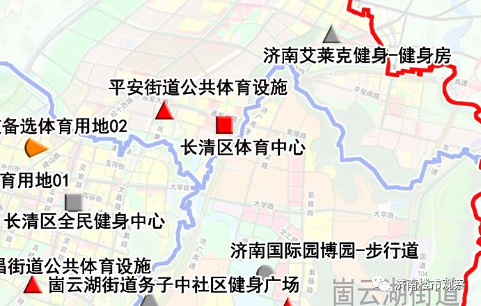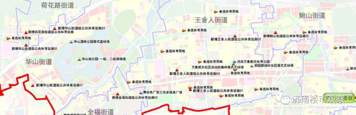 但从规划图看,历城区正在开发的很多区域,都有备选体育用地,比如济南东站片区、郭店片区、华山北片区、雪山片区、港沟片区等。