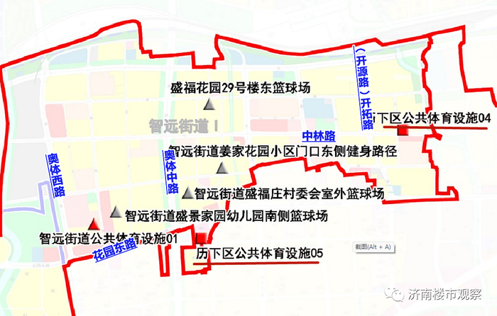 (历下区规划新增体育设施局部图)
