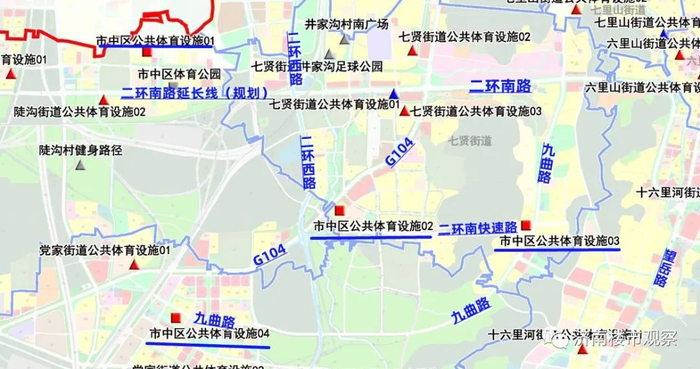 (市中区规划新增体育设施局部图)