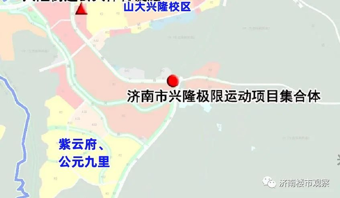 这其中,兴隆极限运动项目集合体位于二环南路以南的兴隆片区,具体是在兴隆水库西北侧、兴隆公园东北角。这附近的社区主要为华润紫云府、公元九里。