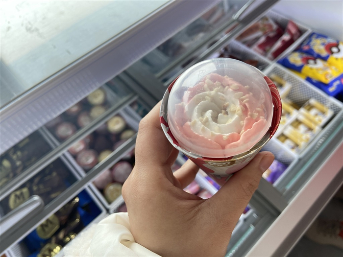 “原料源自云南重瓣红玫瑰,内层白色冰淇淋花蕊是白桃口味,整体产品添加了高达35%的优质纯牛乳,中间还有熔岩树莓酱,更加酸甜可口,最外层则是经典的松脆甜筒和巧克力尖尖,奶香松脆”,和路雪市场部同事告诉记者,这一产品是中国团队的创意,此前有过玫瑰花冰激凌产品,但双层玫瑰花一直没有实现,让两种不同口味和颜色的花瓣包裹在一起,这一技术难点在灯塔工厂得到解决,之后这一中国创意也将走向国外市场。
