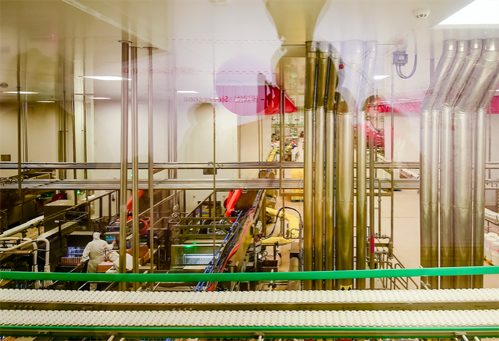 全球最先进的工厂是怎样运行的?记者走近生产车间,冰激凌工厂里恒温恒湿,体感并不冷,处处可见机械手、传送带,安静且快速地运行着,只有几位工人在操作台前工作。据和路雪太仓工厂生产经理王佳梦说,这是全球最快的可爱多生产线,一分钟能生产680支可爱多。目前工厂的自动化程度达80%以上,此前需要70人才能完成的生产班次,现在只需要9人。