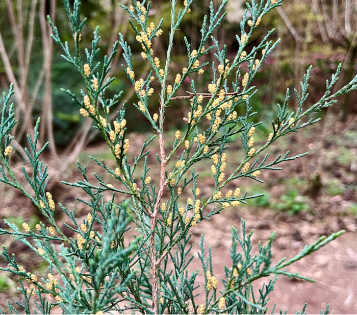 近期成都主要致敏植物为柏科的圆柏属、扁柏属植物、油菜花等。柏科植物在公园、小区造景中有广泛应用,油菜花在成都周边也广泛种植。除此之外,杉科、松科、石楠等致敏植物的花序也逐渐成熟。