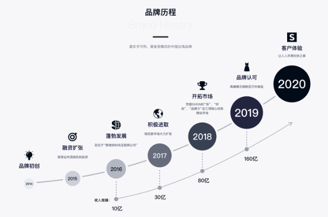2016年-2018年,希音的营收分别为10亿、30亿、80亿,2019年爆发至160亿。