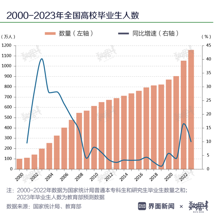 数据 | 24年间毕业生人数增超10倍,2023届毕业生就业更“难”?