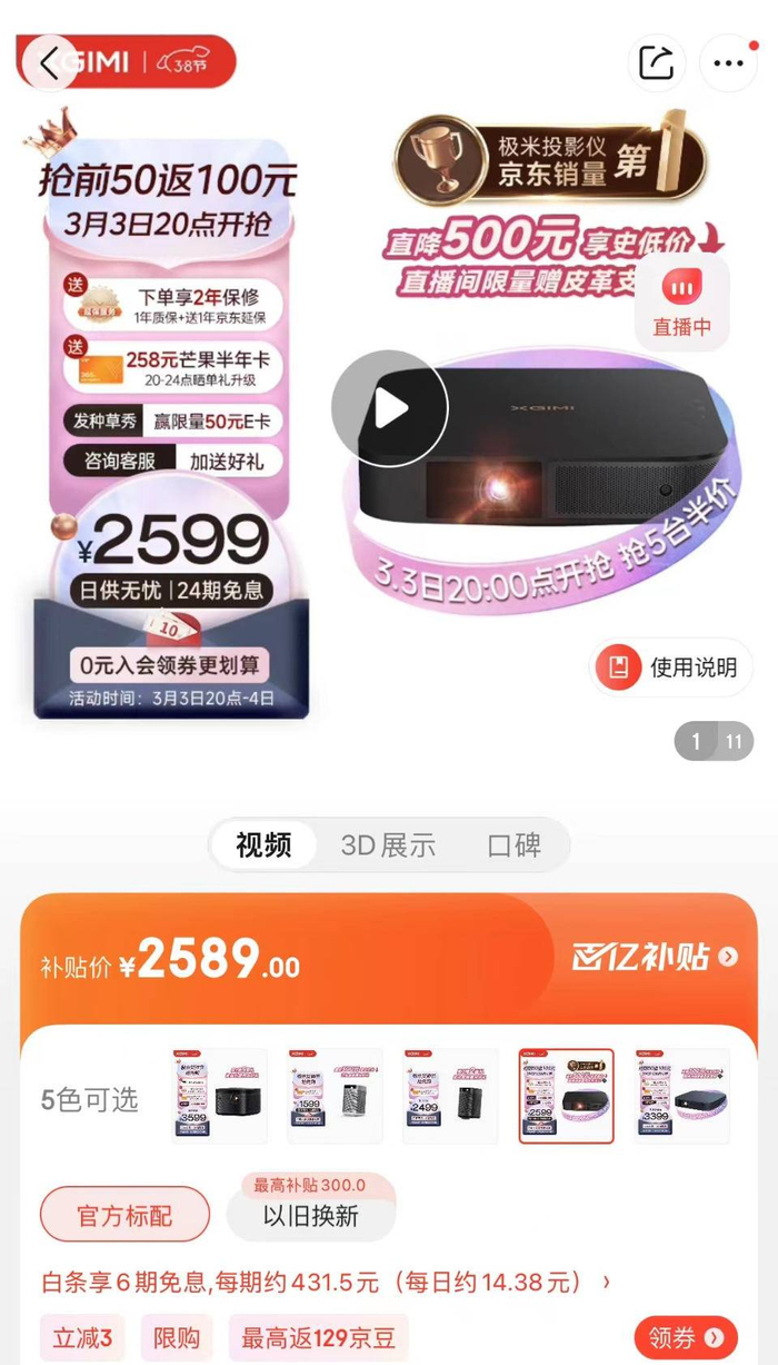 3月2日,记者进入京东APP发现,虽然目前在首页暂未有“百亿补贴”相关入口及宣传,但平台内部分商品已经打上了“百亿补贴”的标签。