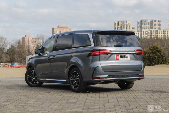 新车侧面造型较为方正,修长的车身腰线从车头贯穿至车尾,搭配其轻量化设计的花瓣轮毂营造出年轻时尚的氛围。新车还在侧裙处加入镀铬元素点缀,且车辆左右两侧均采用电滑门设计。车尾的镀铬饰条将左右两侧连接在一起,底部的熏黑蜂窝式后包围造型运动。
