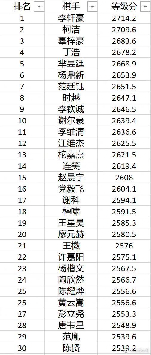 3月2日,根据中国围棋协会公布的等级分排行榜,28岁的李轩豪以2714.2分跃居榜首,柯洁以2709.2分退居第二。当柯洁在2015年10月登顶中国围棋等级分第一时,还不满18岁。如今李轩豪证明,28岁的棋手也可以处于职业生涯的黄金期。