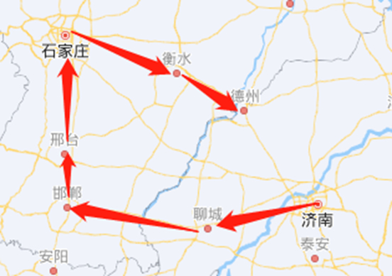 山东济南—山东聊城—邯郸馆陶—石家庄-衡水-山东德州