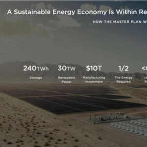 马斯克表示:实现可持续能源经济“宏图计划”需要:240TWh储能、30TW可再生能源、制造领域投资10万亿美元,能源要求不到燃料经济的一半、可再生能源生产设施占0.2%土地面积、储能资源达到2022年世界GDP的10%、无法克服的资源挑战为零。