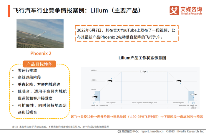 飞行汽车行业竞争情报案例:Lilium(主要产品)